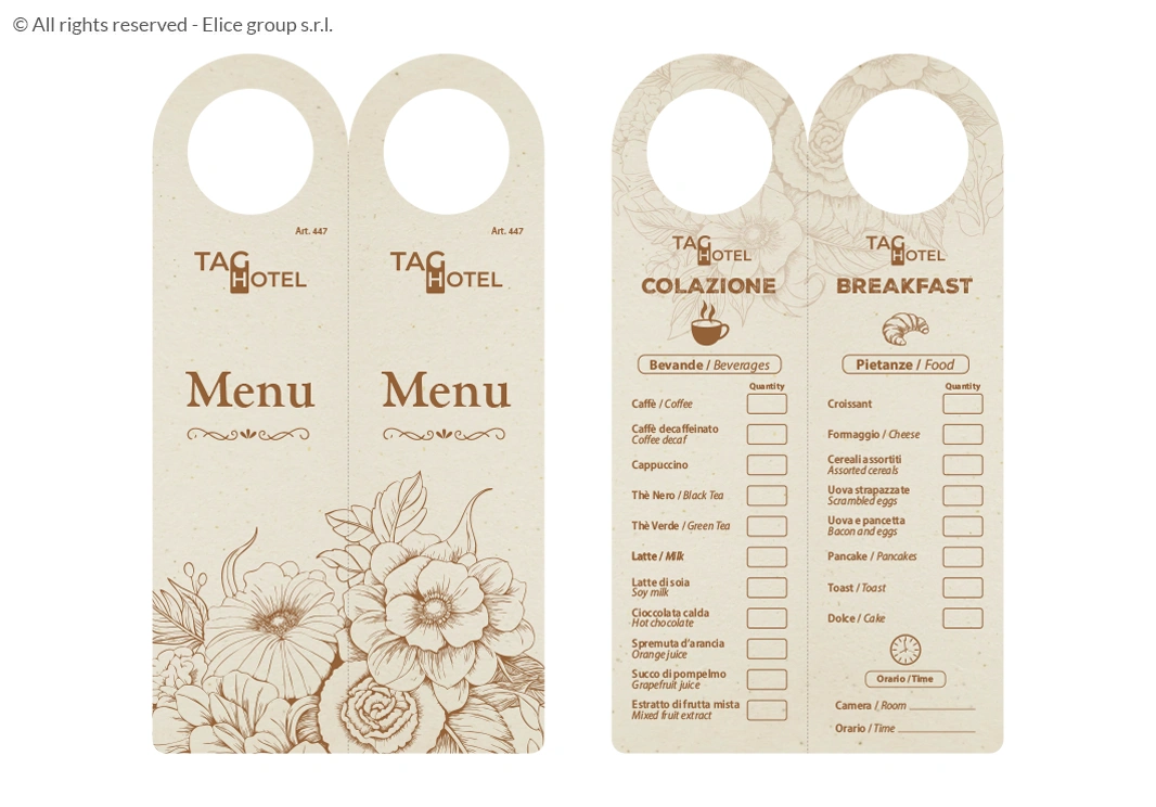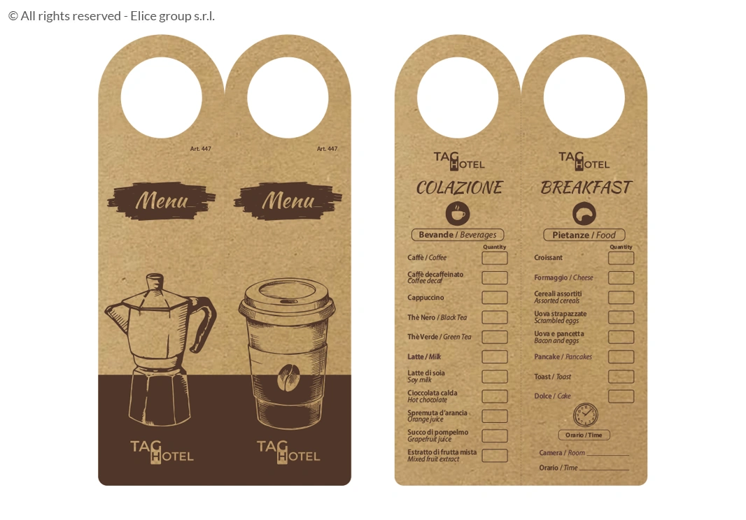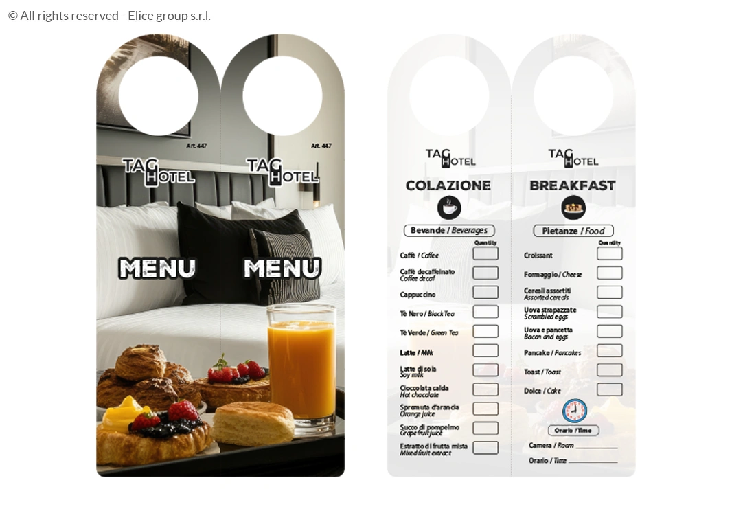 Cartellini Colazione in Camera 14×25 cm | Menu Segnaporta a Libro – Taghotel